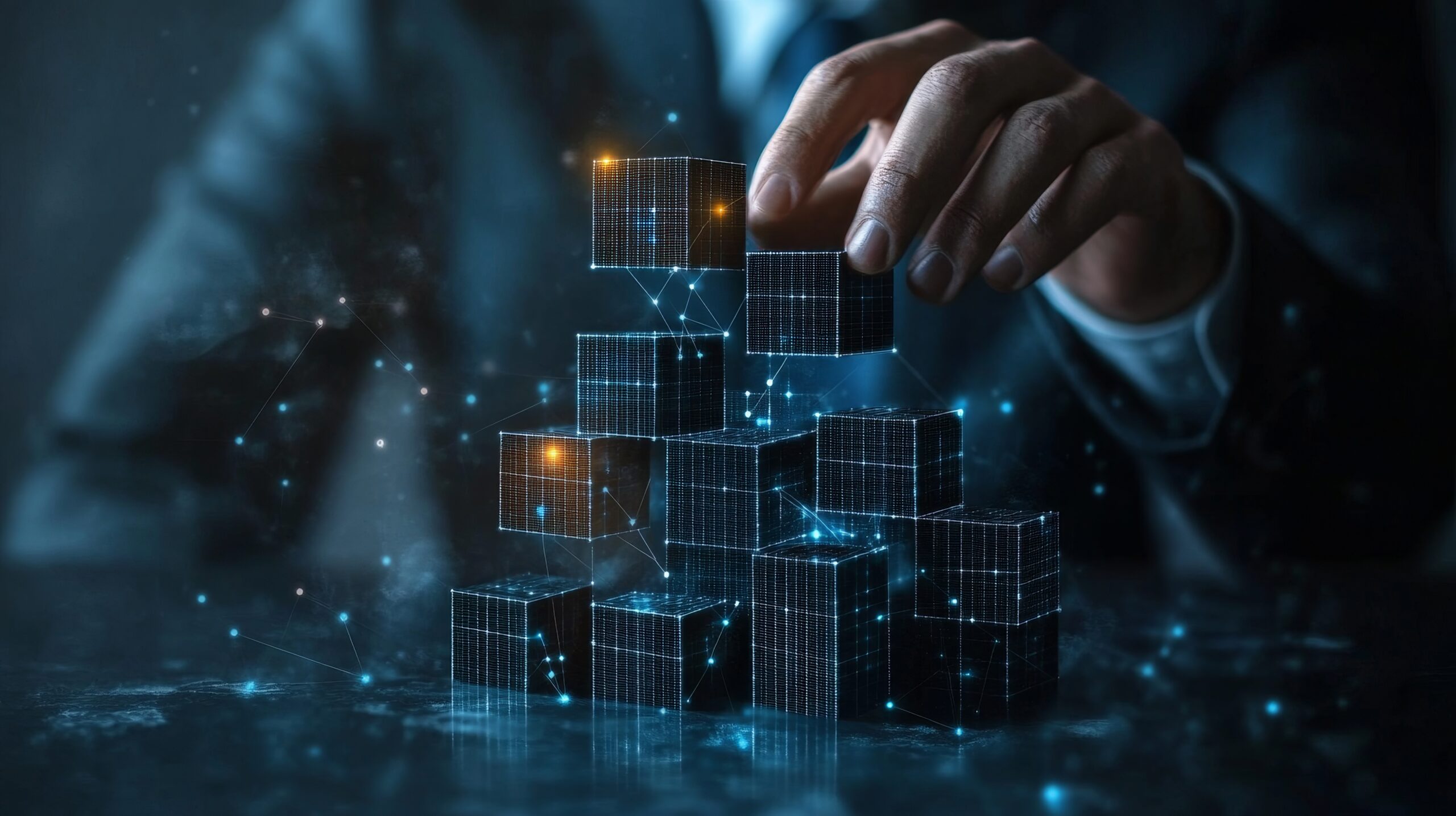 LLM, AI Large Language Model concept. Businessman working on laptop with LLM icons on virtual screen. A language model distinguished by its general-purpose language generation capability. Chat AI.