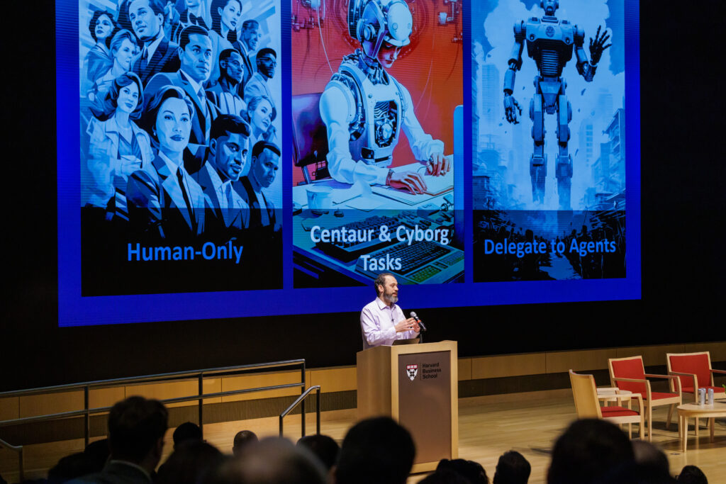 Leading with AI was chaired by HBS professors Karim Lakhani, Tsedal Neeley, and Mitch Weiss, and was presented in partnership with HBS Alumni Relations and the Digital Data Design Institute at Harvard (D^3), a pioneering hub dedicated to the study of transformative technologies.